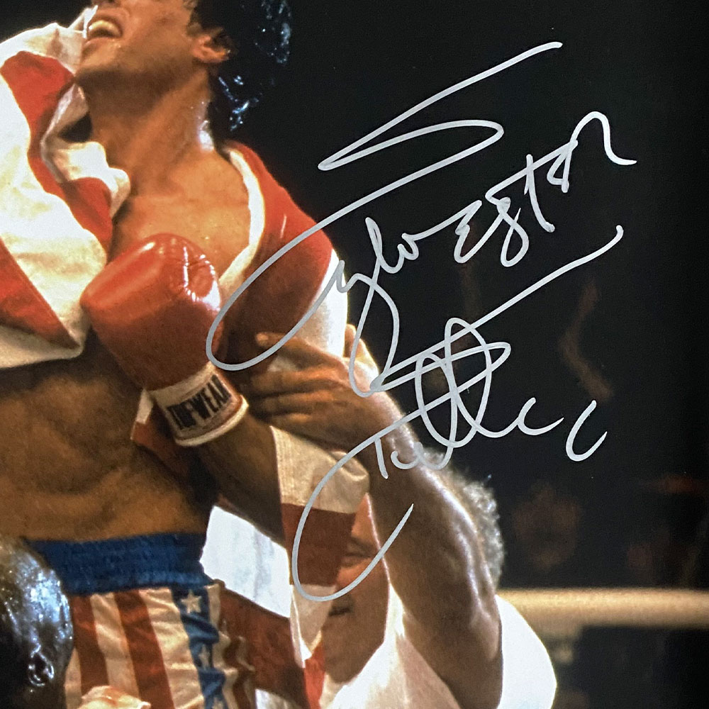 • High quality 16″ x 20″ photograph, personally signed by Sylvester Stallone, mounted into a deluxe display