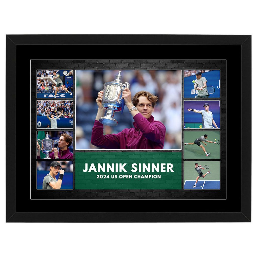 Home/$79 Small Collages/Tennis Pre Prints/Tennis – Jannik Sinner 2024 US Open Champion Framed Pre Print