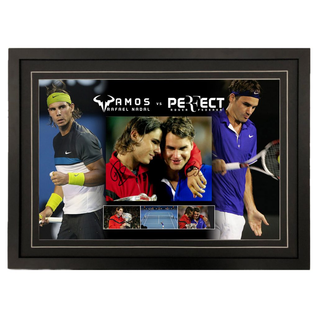 - High quality photograph from the 2009 Australian Open Final hand signed by Roger Federer & Rafael Nadal mounted into the display