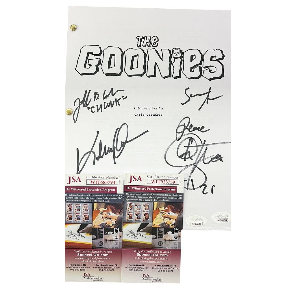 The Goonies Cast Signed & Framed Movie Script (JSA COA)