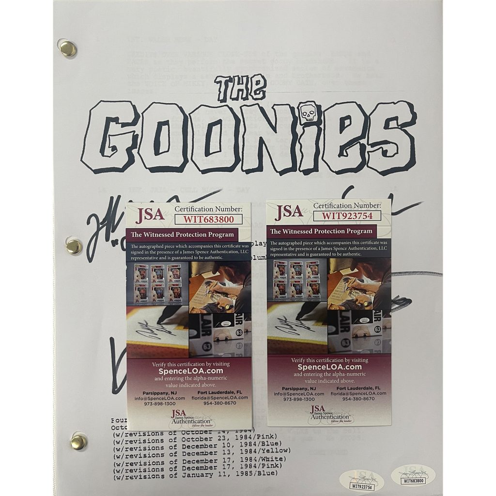- The Goonies full movie script hand signed Sean Astin, Corey Feldman, Jeff Cohen & Ke Huy Quan
