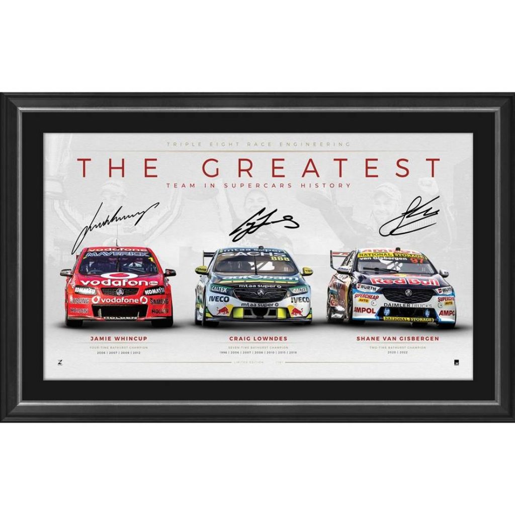 The Greatest – Jamie Whincup, Craig Lowndes & Shane Van Gisbergen Signed & Framed Triple Eight Racing Limited Edition Lithograph