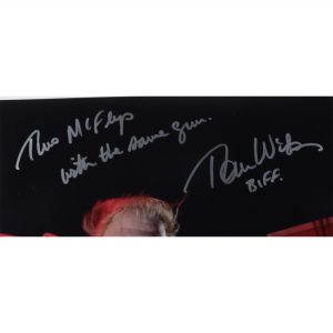 - High quality landscape 11×14 photograph from Back to the Future Part 2 hand signed & inscribed “Biff” and “Two McFlys with the same gun.” by Thomas F. Wilson