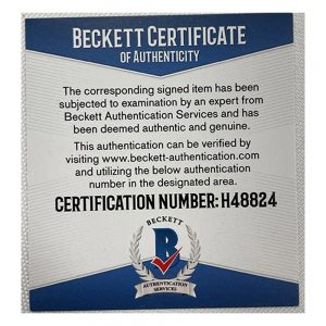 • Accompanied by an individually Numbered Certificate of Authenticity along with third party Beckett Certificate of Authenticity