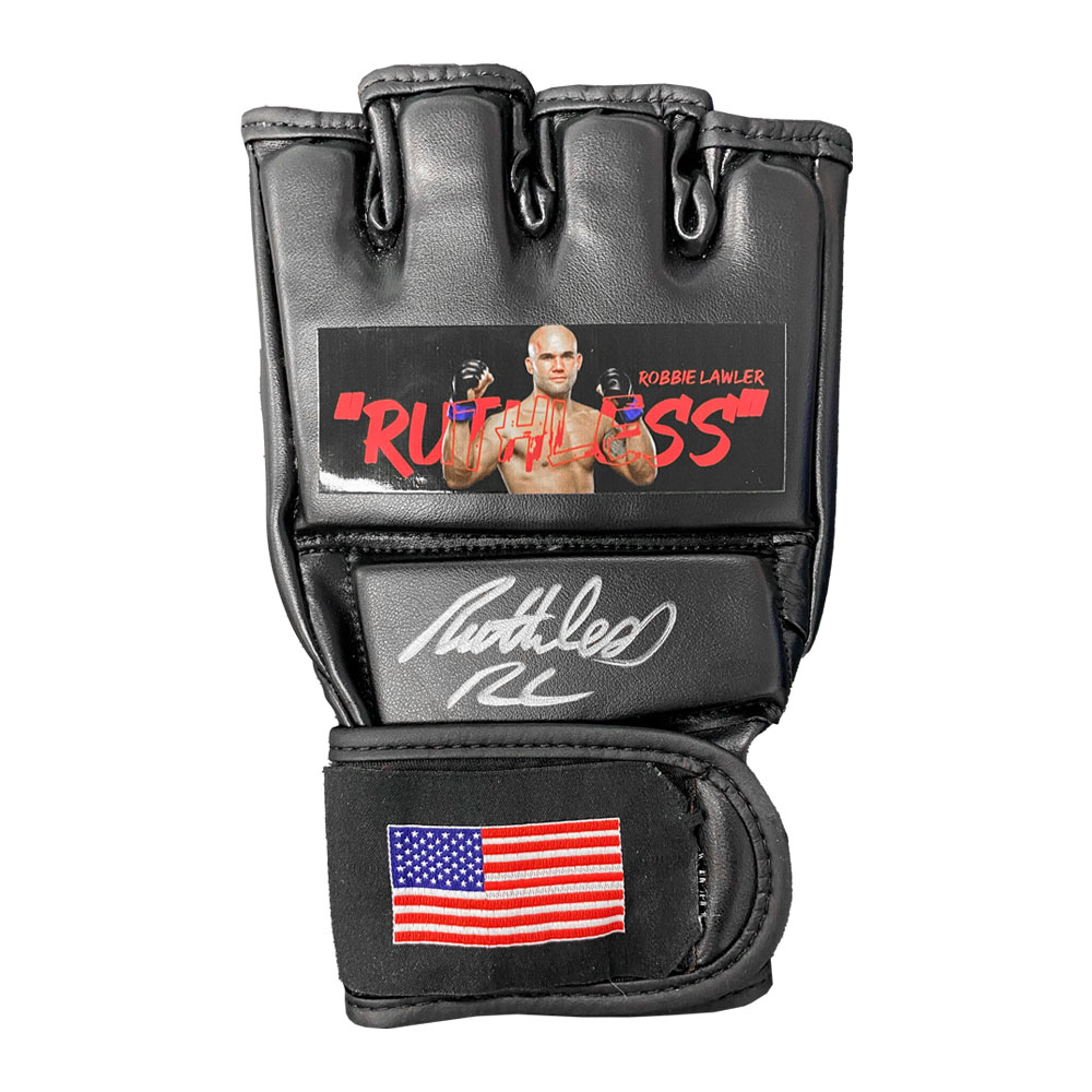 • UFC Glove hand signed in silver marker by Robbie Lawler inscribed “Ruthless”