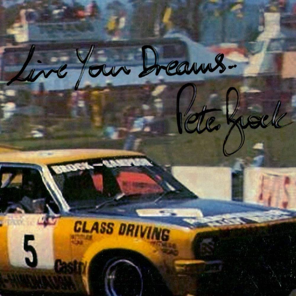 • 8″ × 10″ Photograph, personally signed by Peter Brock accompanied by “Live Your Dreams” hand inscription, mounted into a deluxe display
