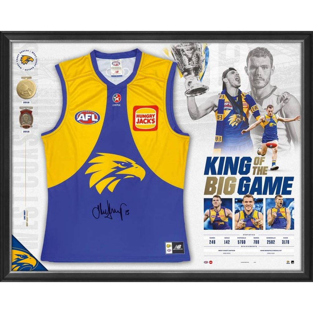 - Magnificent display features an official West Coast Eagles 2023 guernsey, personally signed by Shuey