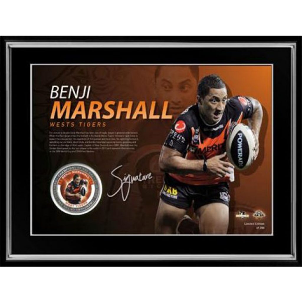 Wests Tigers – Benji Marshall Signed & Framed Medallion Print
