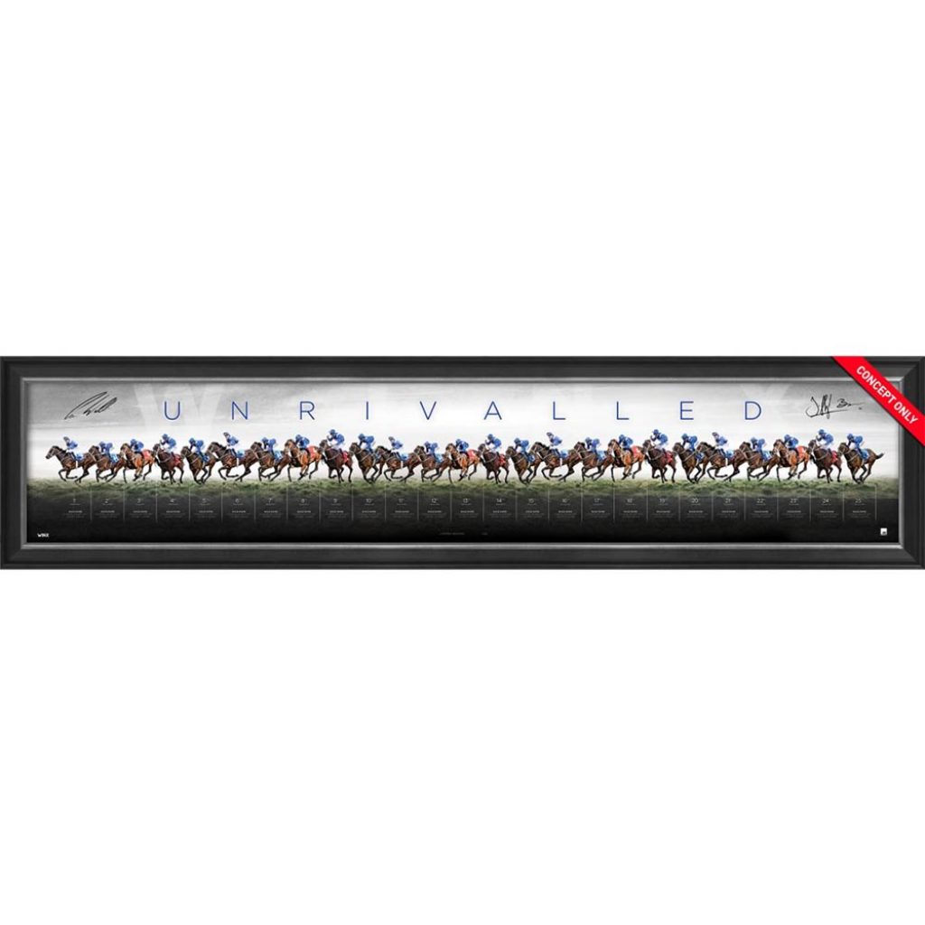 Winx ‘Unrivalled’ Chris Waller & Hugh Bowman Signed and Framed Panorama Print