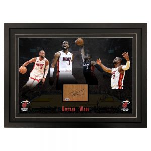 Basketball – Dwyane Wade Hand Signed Wood Floorboard Piece Displ...