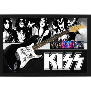 Music – KISS Hand Signed & Framed Full Size Guitar with Bac...