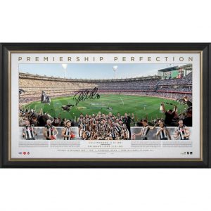 COLLINGWOOD MAGPIES DARCY MOORE 2023 PREMIERS SIGNED & FRAMED PAN...